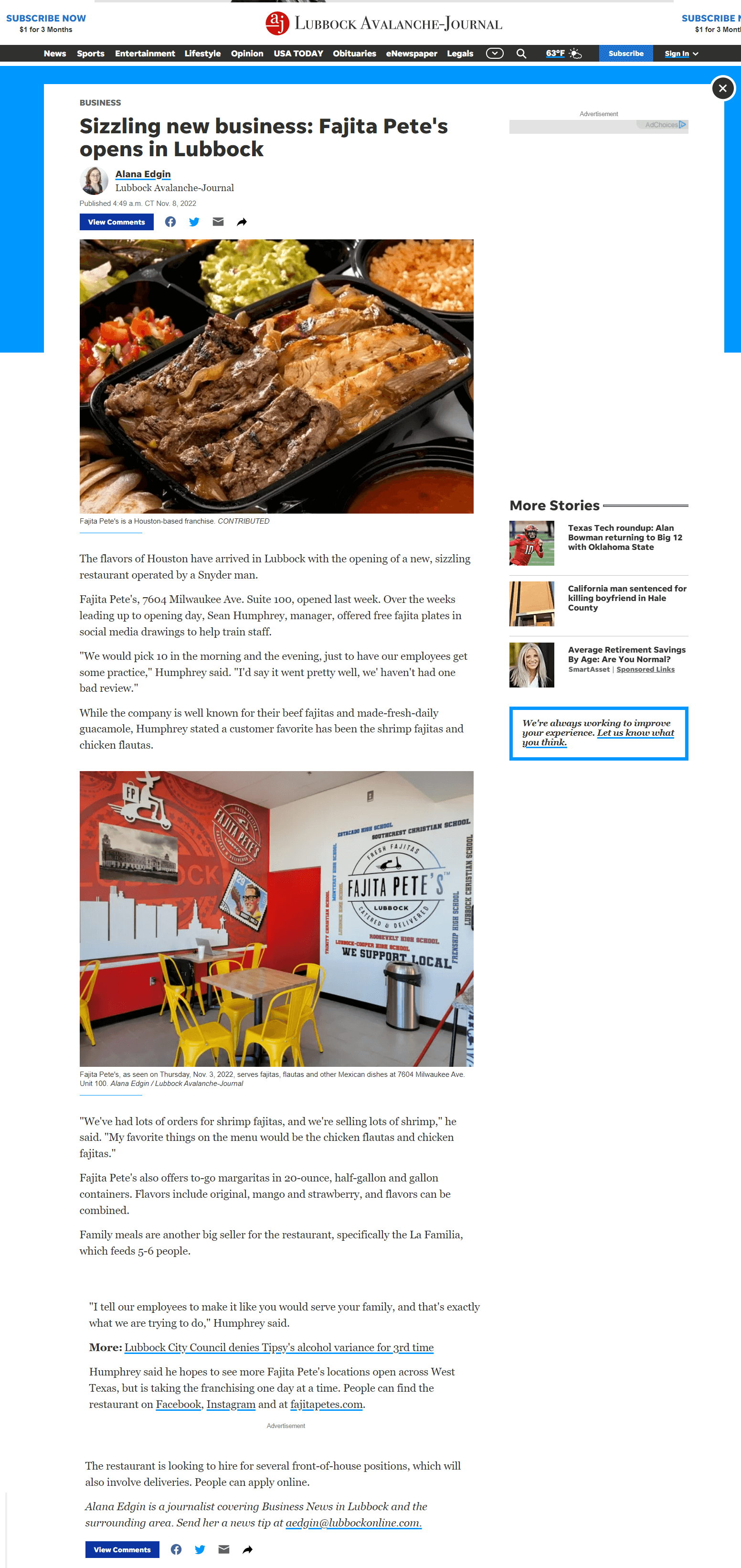 Our newest location opens in Lubbock Tx at 7604 Milwaukee Ave Unit 100, Lubbock, TX 79424. Thank you to the Lubbock Avalanche Journal for announcing our newest location. Click Here to read online.
